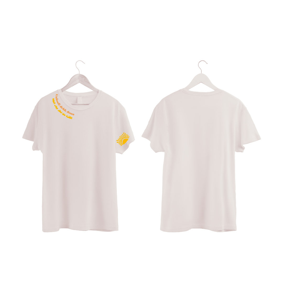 The Dehk Douaya t-shirt holds a vibrant mantra: « they told me laughter is a remedy, an abundance of it opens the gates of paradise ». It is a soft reminder we all need, to smile, stay light, and embrace life’s challenges with positivity.